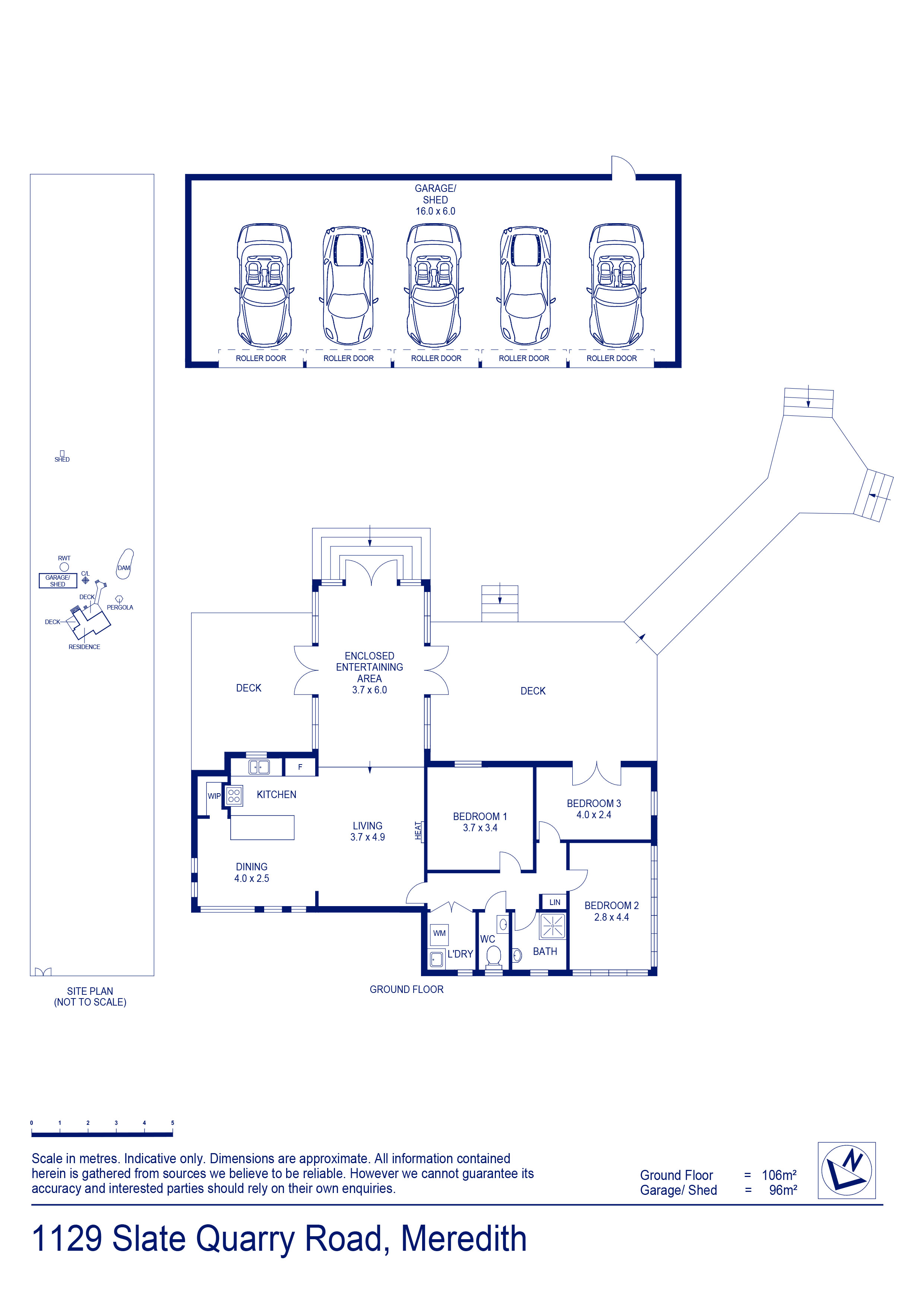 A substantial 96m² five-car garage completes the package — ideal for trades, hobbies, or storage.